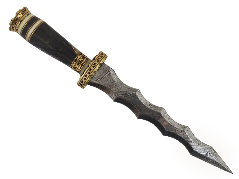 Adaga Kris para colecionador forjado em aço damasco. Empunhadura em chifre de búfalo, 35 cm