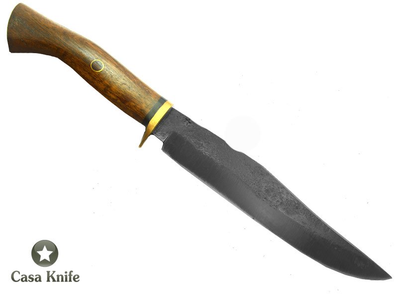 Adelar Filippon faca para colecionador forjada em aço C 75 Fosfatizado, empunhadura em Louro com detalhes em Chifre de Búfalo e guarda em bronze . Contém mosaico em Rochinho do Pará. Acompanha bainha em couro natural feita a mão.