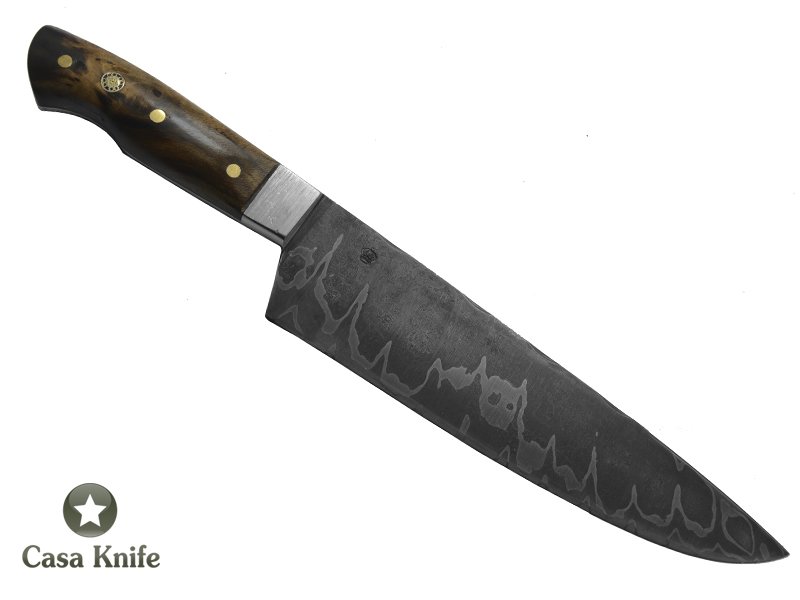 Adelar Filippon Faca Cheff para colecionador forjado em aço damasco, empunhadura em Spalted Platano estabilizado, 32 cm
