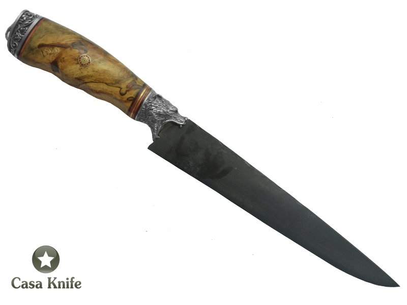 Adelar Filippon Faca para churrasco para colecionador forjado em aço C 75. Empunhadura em Radica Jabuticaba estabilizada, 31 cm