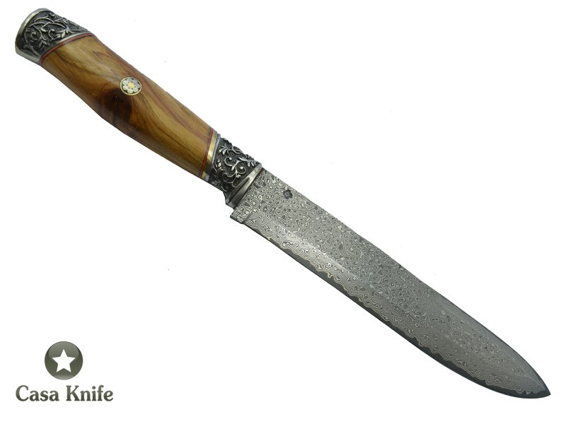 Adelar Filippon faca para colecionador forjado em aço damasco. Empunhadura em Cerejeira, 31 cm