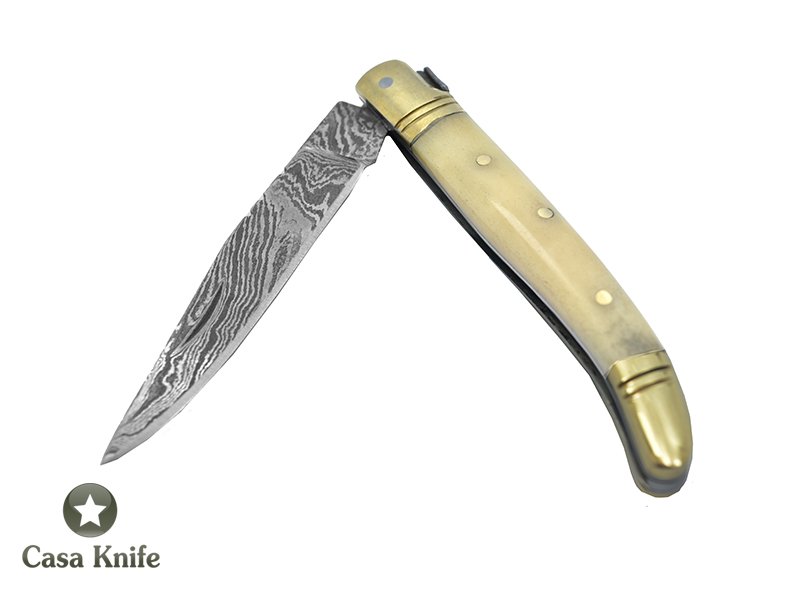 Canivete estilo laguiole para colecionador forjado em aço damasco. Empunhadura em Osso de Boi, 16 cm