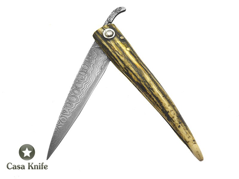 Canivete Friction Folder para colecionador em aço damasco. Empunhadura em chifre de Cervo 21 cm