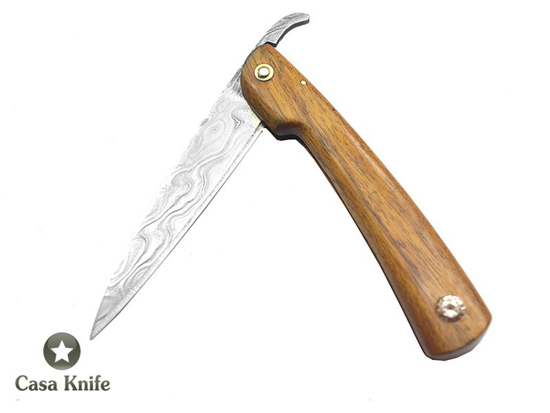 Canivete Friction Folder para colecionador em aço damasco. Empunhadura em Madeira de cedro do Pará, 21 cm