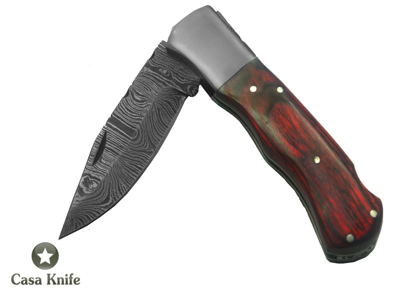 Canivete para colecionador forjado em aço damasco. Empunhadura em Pakawood, 18 cm