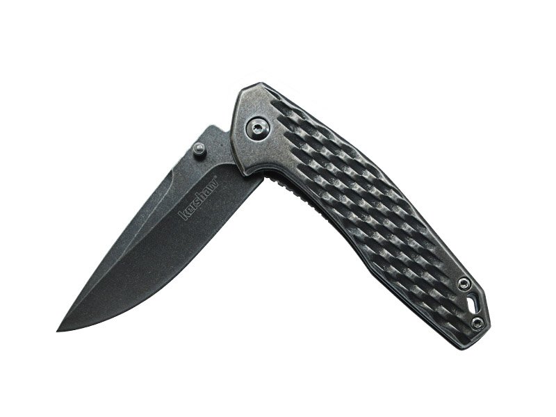 Canivete para colecionador Kershaw em aço 8cr13mou com lâmina em aço 420. Toda peça tem um acabamento estonado impecável. Contém clip para colocar na cinta. bainha em couro natural feita à mão.