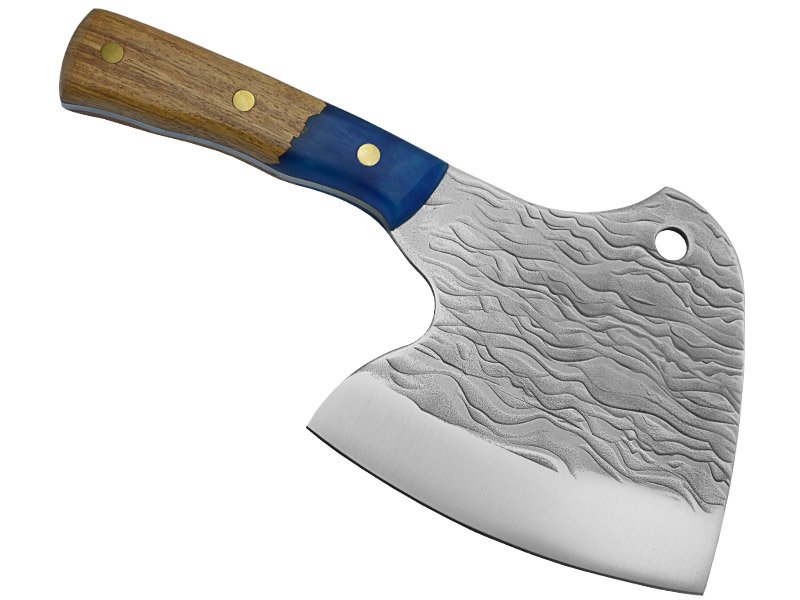 Cutelo em aço 5CR15MOU. Empunhadura em nogueira com resina, pinos em bronze.