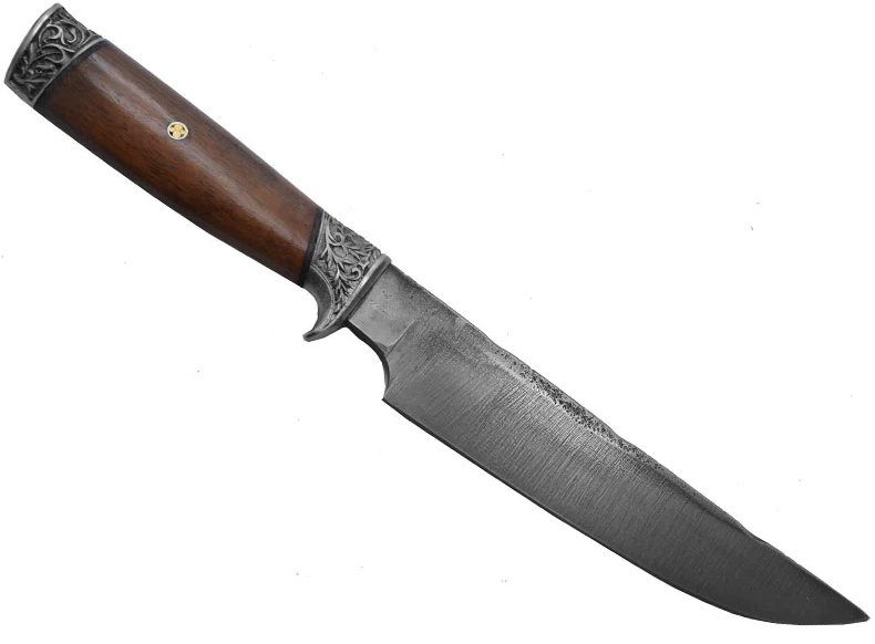 Faca Brüt Forge Monte Cristo para colecionador forjado em aço 5160. Empunhadura em Madeira Oiti. Guarda e pomo em aço inox com mosaico em bronze. Acompanha bainha e atilio em couro natural com uma linda peça em bronze.