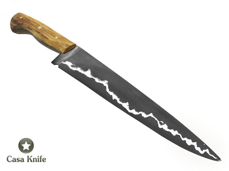 Faca Cheff para colecionador forjado em aço Go Mai 10 polegadas com oxidaçao preta. Empunhadura em Spalted de uva japonesa estabilizado,39 cm