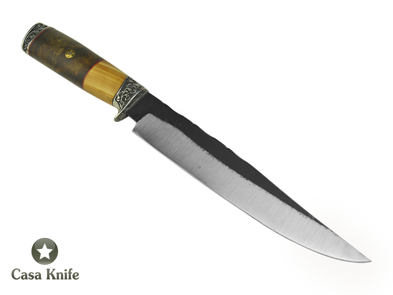 Faca para churrasco para colecionador forjado em aço 1070. Empunhadura em Imbuia e Cipreste, 31 cm