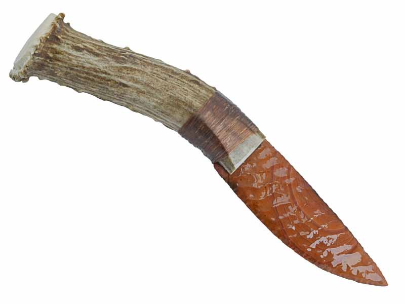 Magnifica faca para colecionador com lâmina em Obsidiana. Empunhadura em chifre de cervo com roseta.