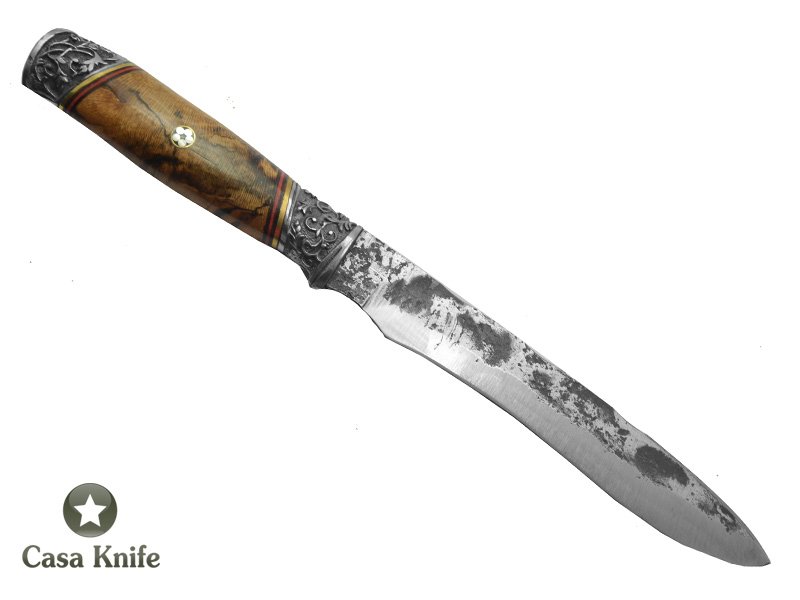 Monte Cristo faca Brut Forge para colecionador forjado em aço 5160. Empunhadura em Madeira Spaldet Platano estabilizada, 29 cm