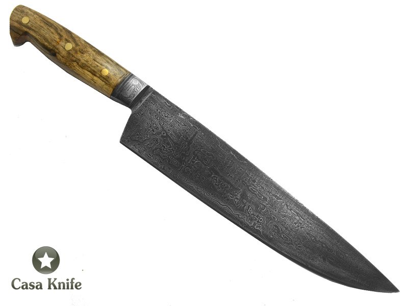Monte Cristo Faca Cheff para colecionador em aço damasco 15N20 - 1095. Com Empunhadura em Platâno estabilizadao 34 cm