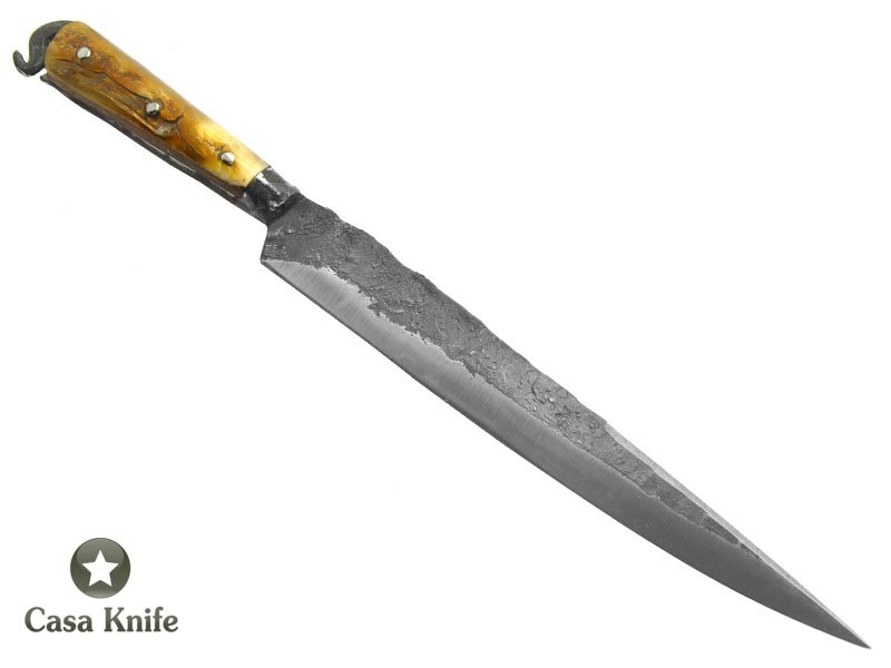 Montecristo faca Brüt Forge integral para colecionador em aço carbono com empunhadura em Chifre de Carneiro, 42 cm