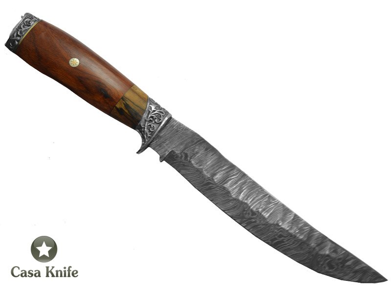 Montecristo Faca para churrasco para colecionador forjada em aço damasco escalavrado. Empunhadura em Jacaranda Bahia, 29 cm