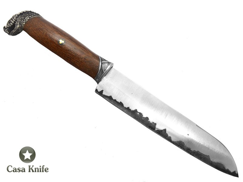 Montecristo faca Santoku para colecionador forjada em aço SAN MAI , Empunhadura em Jacaranda Banhia, 29 cm