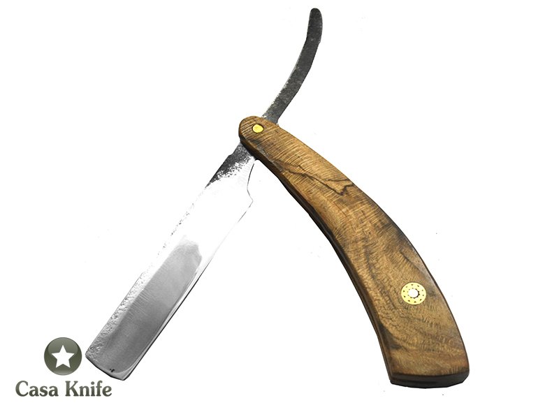 Navalha para colecionador forjada em aço 5160, Empunhadura em madeira de Nogueira, 22 cm