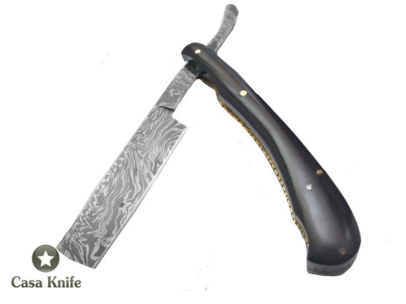 Navalha para colecionador forjada em aço damasco , com empunhadura em micarta, 24 cm